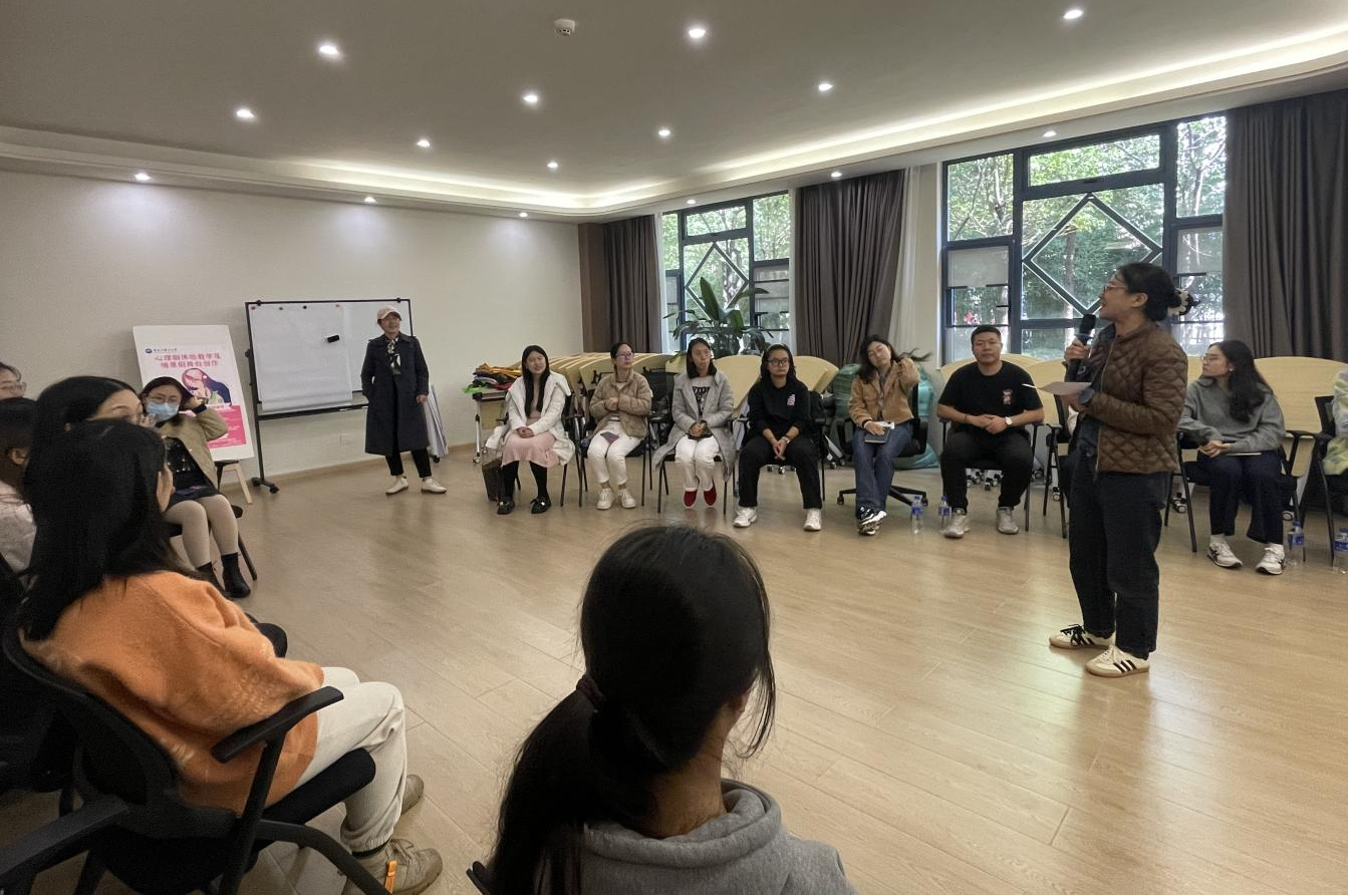 为加强我校心理情景剧的创作和排演水平,提高“以美润心”心理育人活力和创造力,拓宽心理情景剧在大学生心理健康教育与服务工作中的应用范围,心理健康教育与服务中心(以下简称中心)于2024年10月11日在和合楼116团体辅导室举办“心理剧体验教学及情景剧舞台创作”工作坊。各学院负责心理健康教育工作的专职辅导员、学生代表、中心全体专职教师共20余人参加活动。