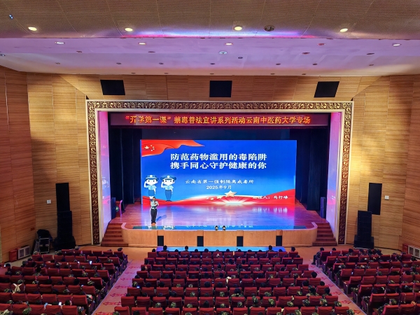 为强化学生禁毒意识,普及毒品预防知识,营造“健康人生、绿色无毒”的校园环境,2025年9月16日,云南省第一强制戒毒所走进云南中医药大学,举办“开学第一课”禁毒普法宣讲系列活动。2025级全体军训学生共同参与。