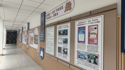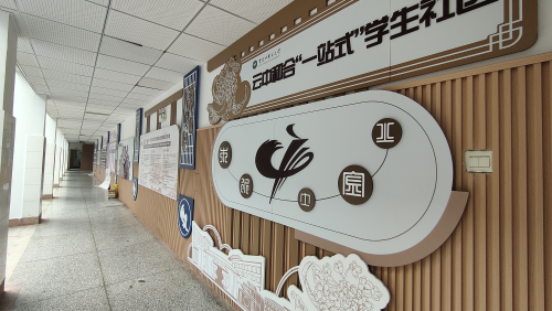 “一站式”综合社区金桂苑样板社区于2024年10月正式建成投入使用,其管理主体为基础医学院,建设了涵盖党团建设、学业指导、中医药文化宣教、师生交流咨询室等多种功能空间,累计面积达1003.35m2,建设完成20余项内容,文化展板50余块,覆盖公共楼道、花园区域,实现了功能性、实用性和拓展性相统一的社区改造工作。