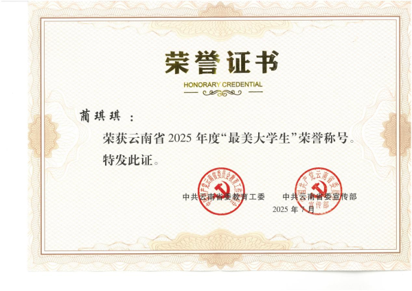 蔺琪琪同学获2025年度云南省“最美大学生”称号
