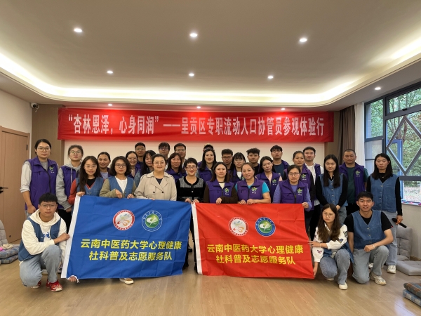 为弘扬中医药文化和志愿服务精神,学生处党支部、云南中医药大学心理健康社科普及志愿服务队与呈贡区流管办于11月3日联合组办“杏林恩泽,心身同润”——呈贡区专职流动人口协管员进校园活动。