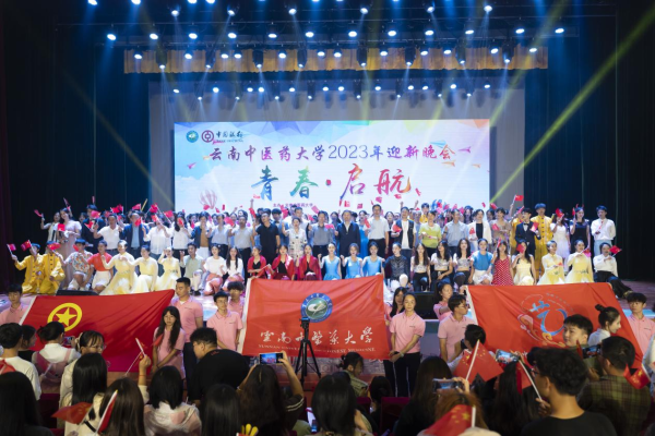 9月26日晚,云南剪切中医药大学2023年迎新晚会在呈贡校区兰茂堂举行。校长丁中涛,党委副书记杨鹤清,副校长陈祖琨、俞捷出席晚会。党委宣传部、学工部、研工部、马克思主义学院、保卫处、教务处、财务处、国际教育学院、后勤服务集团、校团委负责人,各学院分管学生工作领导和新生代表等1300余名师生参加活动。全校师生通过网络直播形式观看了晚会。