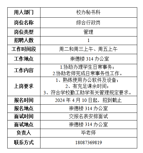 3、用工部门组织招聘,招聘结束后将拟录用学生的《申请表》交学生处。