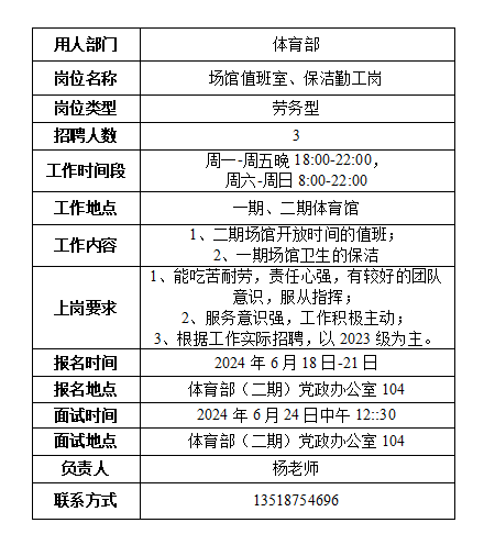 我校相关部门需招聘勤工助学同学一批,有关事宜公告如下: