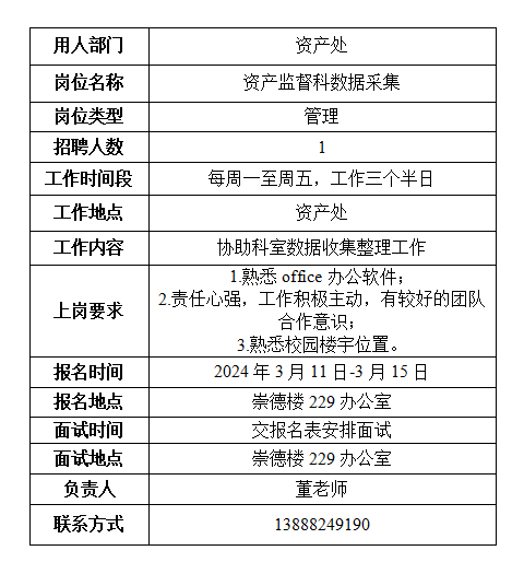 3、用工部门组织招聘,招聘结束后将拟录用学生的《申请表》交学生处。