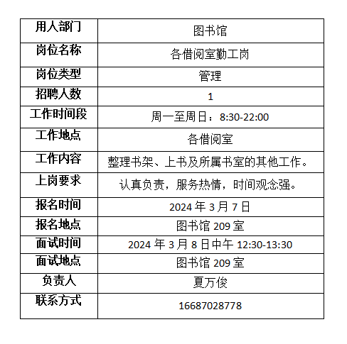 我校相关部门需招聘勤工助学同学一批,有关事宜公告如下: