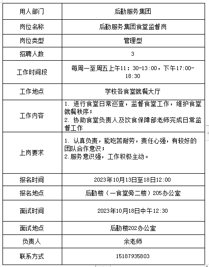 3、用工部门组织招聘,招聘结束后将拟录用学生的《申请表》交学生处。