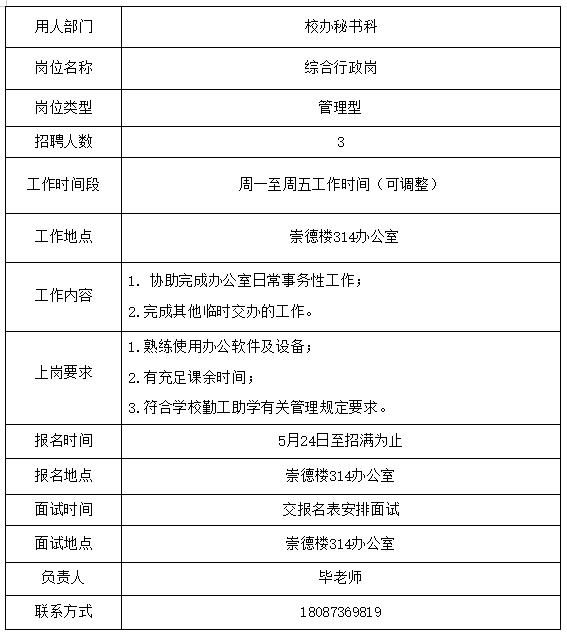 我校相关部门需招聘勤工助学同学一批,有关事宜公告如下:
