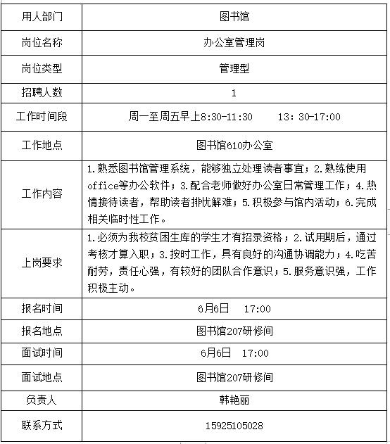 我校相关部门需招聘勤工助学同学一批,有关事宜公告如下: