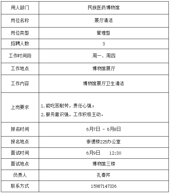 3、用工部门组织招聘,招聘结束后将拟录用学生的《申请表》交学生处。