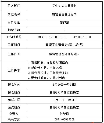 3、用工部门组织招聘,招聘结束后将拟录用学生的《申请表》交学生处。