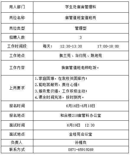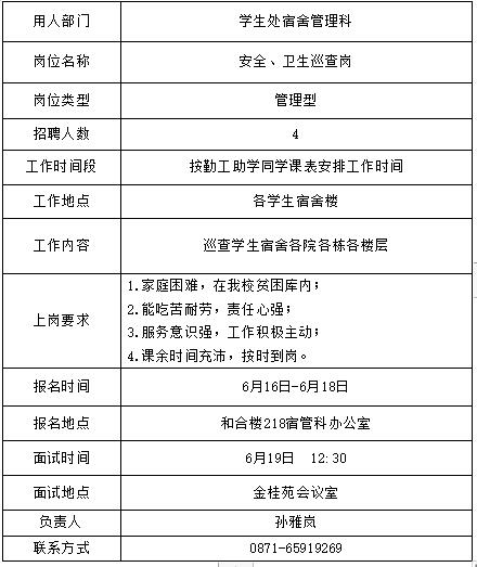2、申请人持已核实过的《云南中医药大学本科生勤工助学岗位申请表》按照招聘信息的要求到各用工部门进行应聘。
