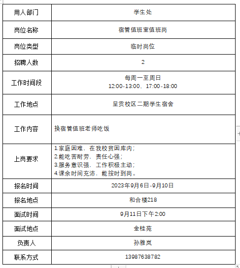 4、学生处将用工部门拟录用名单在学校宣传栏进行公示公布。