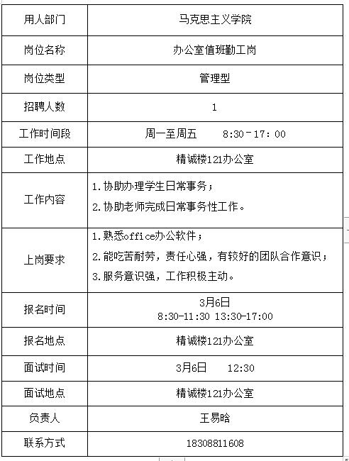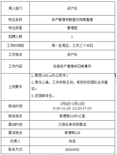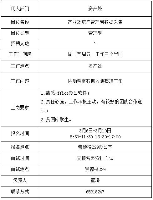 3、用工部门组织招聘,招聘结束后将拟录用学生的《申请表》交学生处。