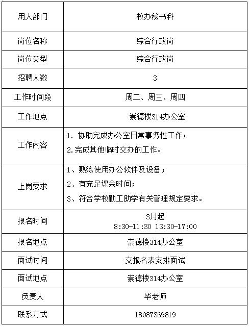 我校相关部门需招聘勤工助学同学一批,有关事宜公告如下: