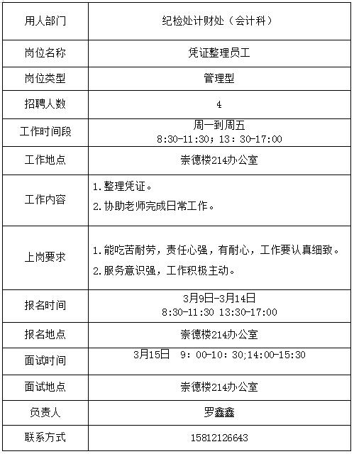 3、用工部门组织招聘,招聘结束后将拟录用学生的《申请表》交学生处。