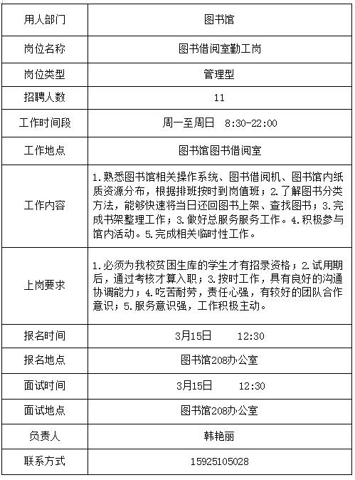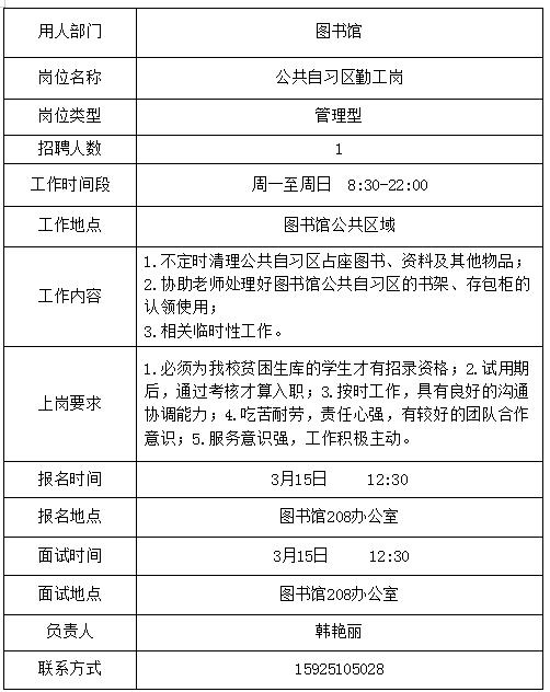 我校相关部门需招聘勤工助学同学一批,有关事宜公告如下: