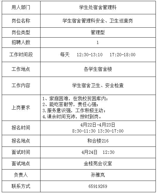 我校相关部门需招聘勤工助学同学一批,有关事宜公告如下:
