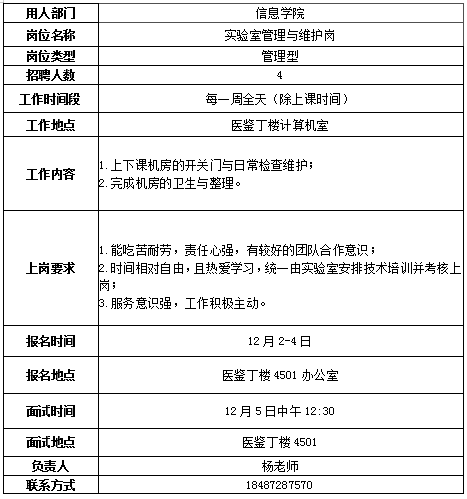 我校相关部门需招聘勤工助学同学一批,有关事宜公告如下: