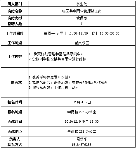 3、用工部门组织招聘,招聘结束后将拟录用学生的《申请表》交学生处。