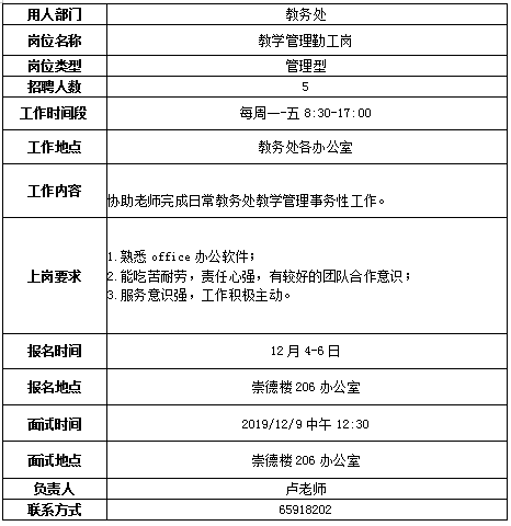 我校相关部门需招聘勤工助学同学一批,有关事宜公告如下: