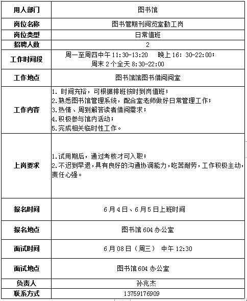 3、用工部门组织招聘,招聘结束后将拟录用学生的《申请表》交学生处。