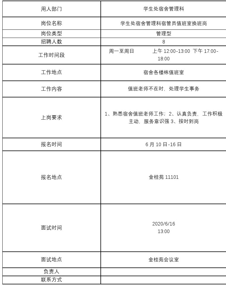 3、用工部门组织招聘,招聘结束后将拟录用学生的《申请表》交学生处。