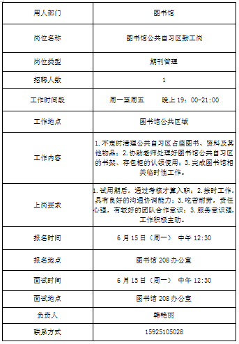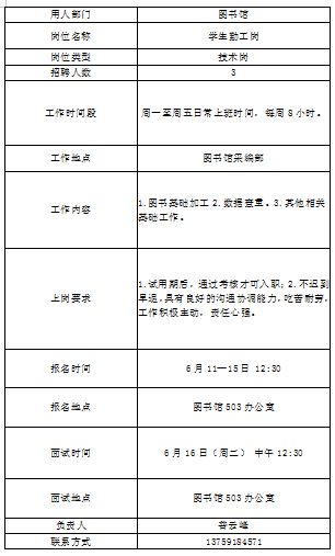 我校相关部门需招聘勤工助学同学一批,有关事宜公告如下: