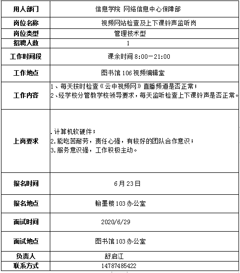 我校相关部门需招聘勤工助学同学一批,有关事宜公告如下: