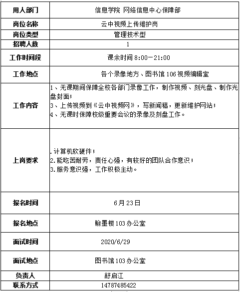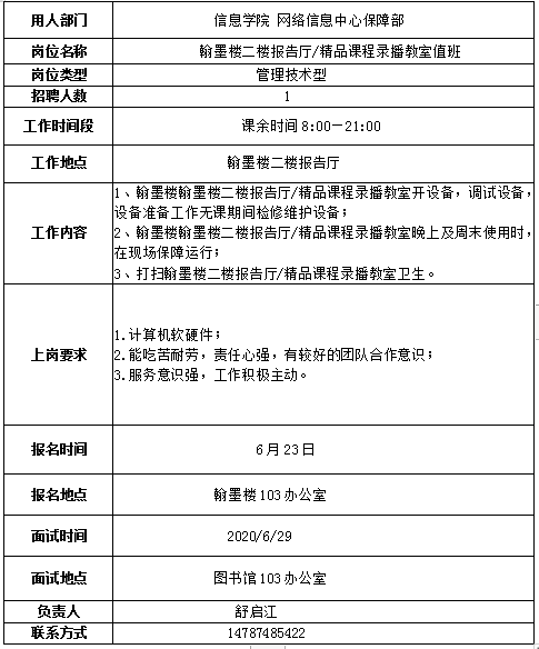 3、用工部门组织招聘,招聘结束后将拟录用学生的《申请表》交学生处。