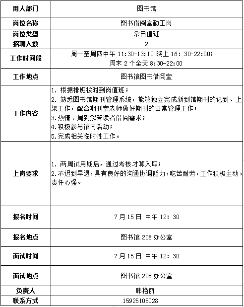 3、用工部门组织招聘,招聘结束后将拟录用学生的《申请表》交学生处。