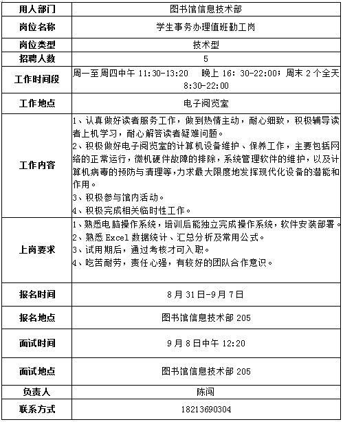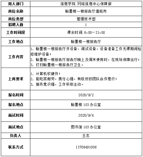 3、用工部门组织招聘,招聘结束后将拟录用学生的《申请表》交学生处。