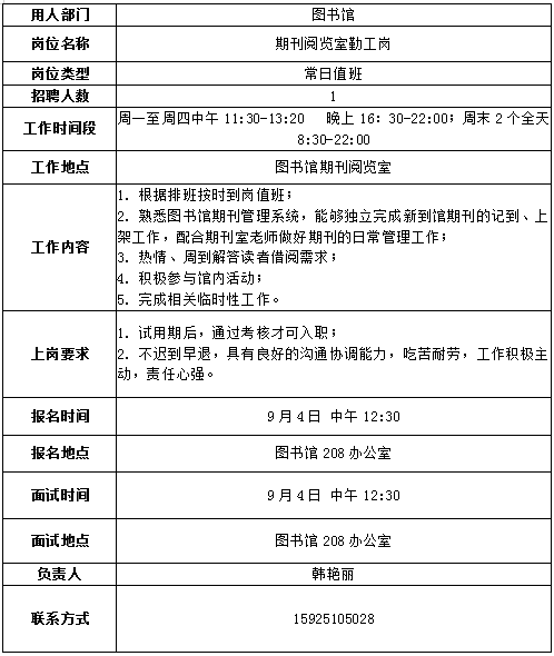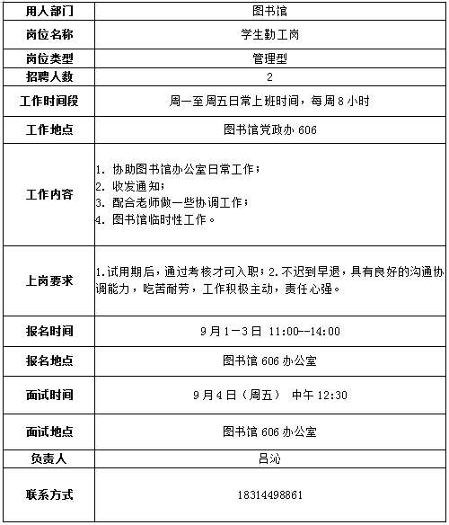 我校相关部门需招聘勤工助学同学一批,有关事宜公告如下: