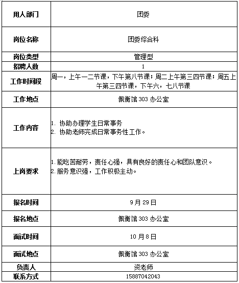 3、用工部门组织招聘,招聘结束后将拟录用学生的《申请表》交学生处。