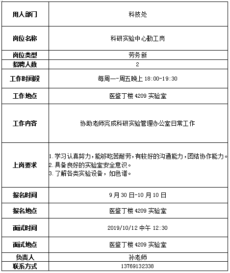 我校相关部门需招聘勤工助学同学一批,有关事宜公告如下: