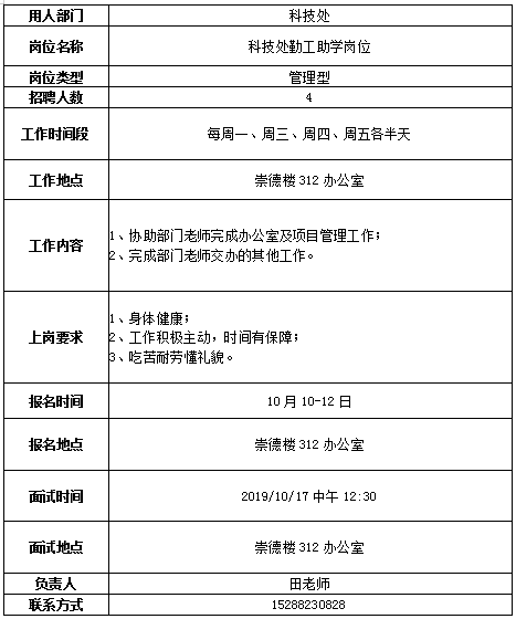3、用工部门组织招聘,招聘结束后将拟录用学生的《申请表》交学生处。