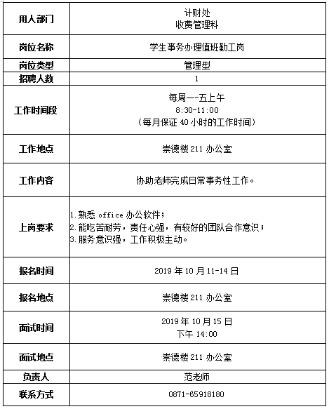 3、用工部门组织招聘,招聘结束后将拟录用学生的《申请表》交学生处。