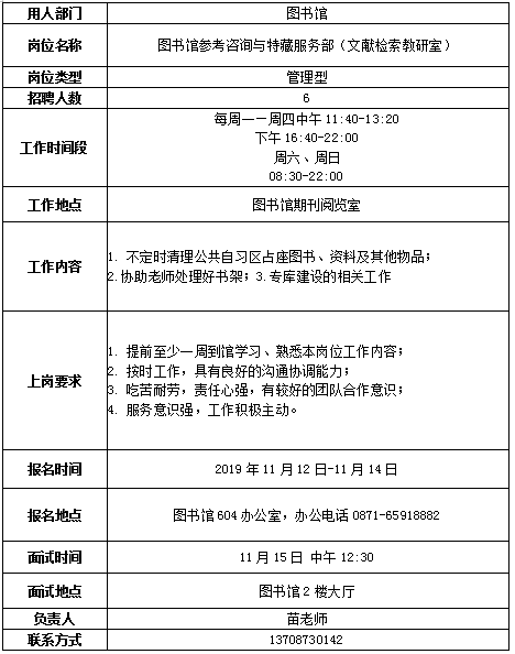 2、申请人持已核实过的《云南中医药大学本科生勤工助学岗位申请表》按照招聘信息的要求到各用工部门进行应聘。