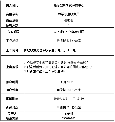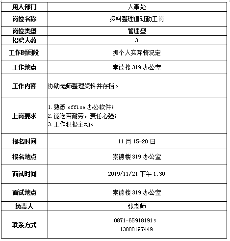 3、用工部门组织招聘,招聘结束后将拟录用学生的《申请表》交学生处。