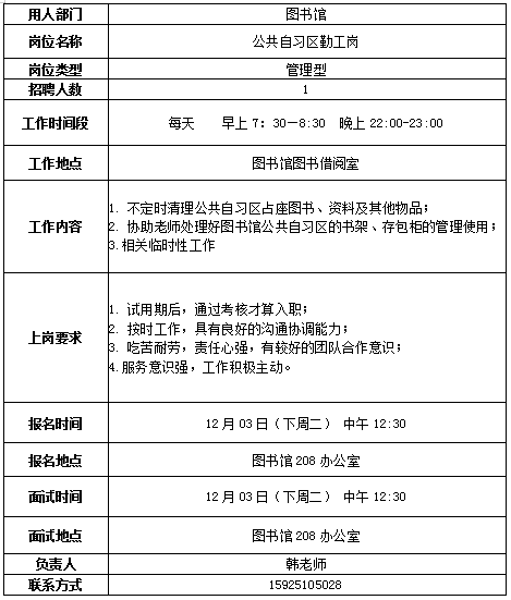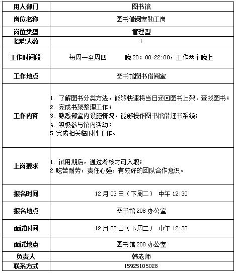 我校相关部门需招聘勤工助学同学一批,有关事宜公告如下: