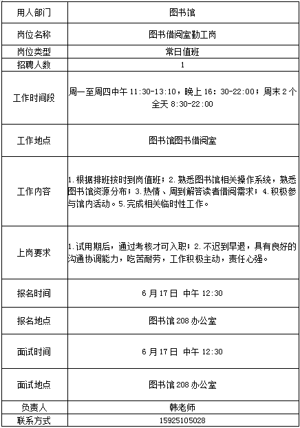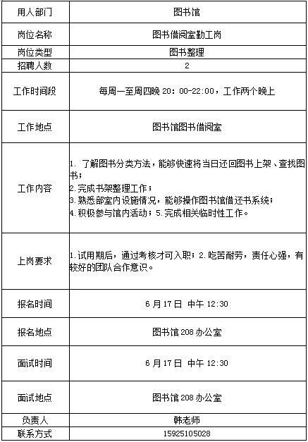 我校相关部门需招聘勤工助学同学一批,有关事宜公告如下: