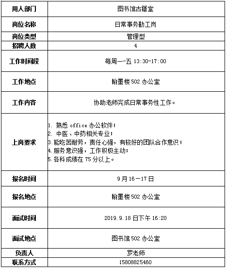 2、申请人持已核实过的《云南中医药大学本科生勤工助学岗位申请表》按照招聘信息的要求到各用工部门进行应聘。
