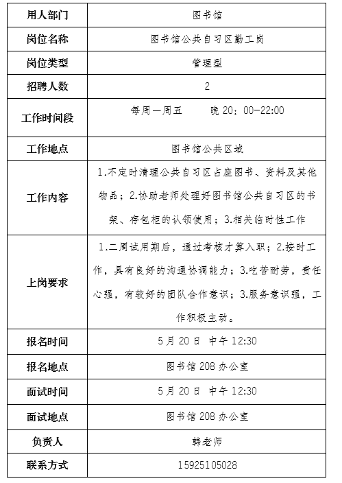 我校相关部门需招聘勤工助学同学一批,有关事宜公告如下: